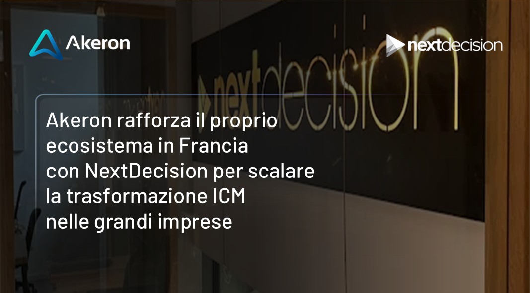 Akeron, provider globale di soluzioni software enterprise con sedi in Europa e negli Stati Uniti e headquarter a Lucca, annuncia una partnership strategica con NextDecision, società di consulenza e system integration con sede in Francia, specializzata in Sales Performance Management (SPM) e Incentive Compensation Management (ICM).
