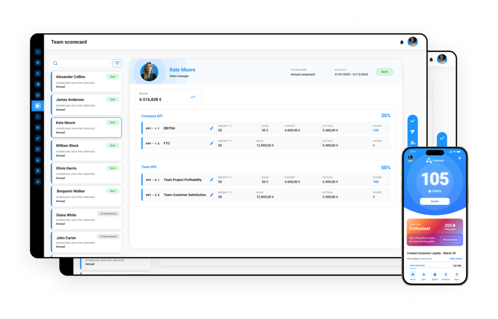 Sviluppa, gestisci e liquida piani di retribuzione variabile per tutti i dipendenti e collaboratori. Crea bonus e MBO che possano realmente motivare il personale dei diversi dipartimenti, senza limiti di complessità nella struttura o nelle definizioni di KPI.